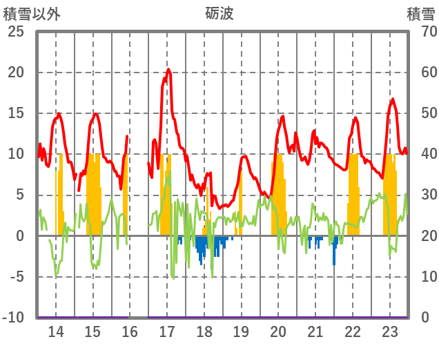 | 日 | 時 | 気温 | 降水 | 風向/風速 | 日照 | 積雪 | 降雪 |