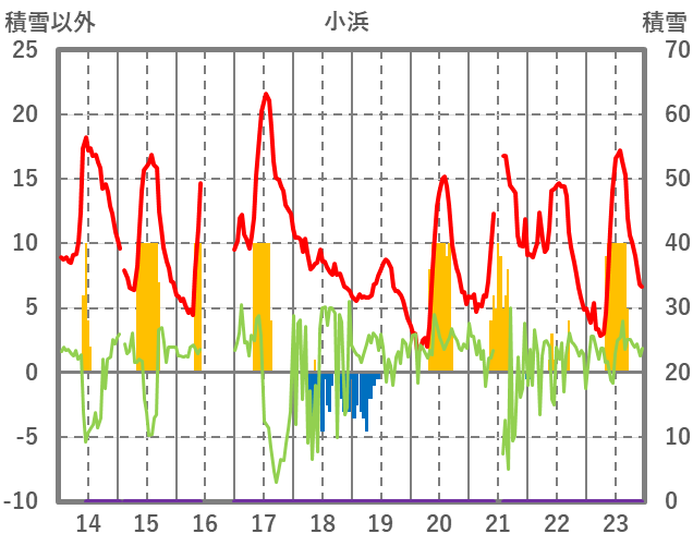 | 日 | 時 | 気温 | 降水 | 風向/風速 | 日照 | 積雪 | 降雪 |
