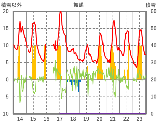 | 日 | 時 | 気温 | 降水 | 風向/風速 | 日照 | 積雪 | 降雪 |