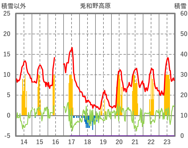 | 日 | 時 | 気温 | 降水 | 風向/風速 | 日照 | 積雪 | 降雪 |