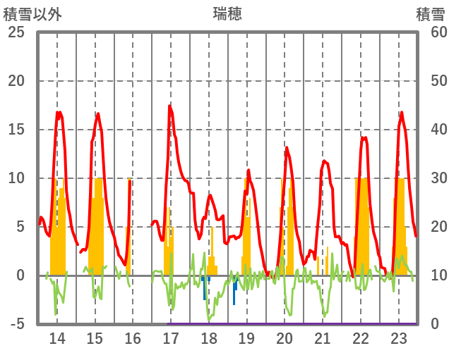 | 日 | 時 | 気温 | 降水 | 風向/風速 | 日照 | 積雪 | 降雪 |
