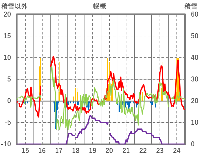 | 日 | 時 | 気温 | 降水 | 風向/風速 | 日照 | 積雪 | 降雪 |