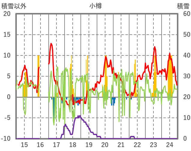 | 日 | 時 | 気温 | 降水 | 風向/風速 | 日照 | 積雪 | 降雪 |