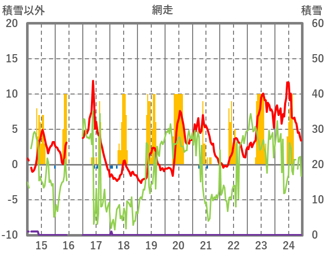 | 日 | 時 | 気温 | 降水 | 風向/風速 | 日照 | 積雪 | 降雪 |