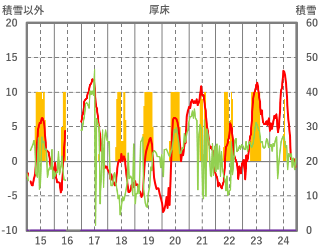 | 日 | 時 | 気温 | 降水 | 風向/風速 | 日照 | 積雪 | 降雪 |
