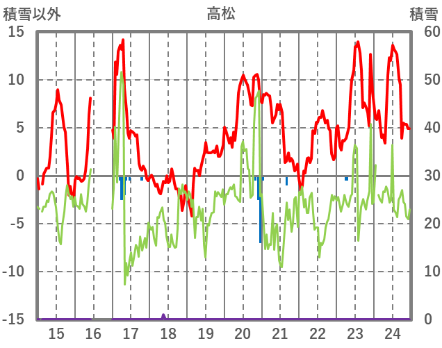 | 日 | 時 | 気温 | 降水 | 風向/風速 | 日照 | 積雪 | 降雪 |