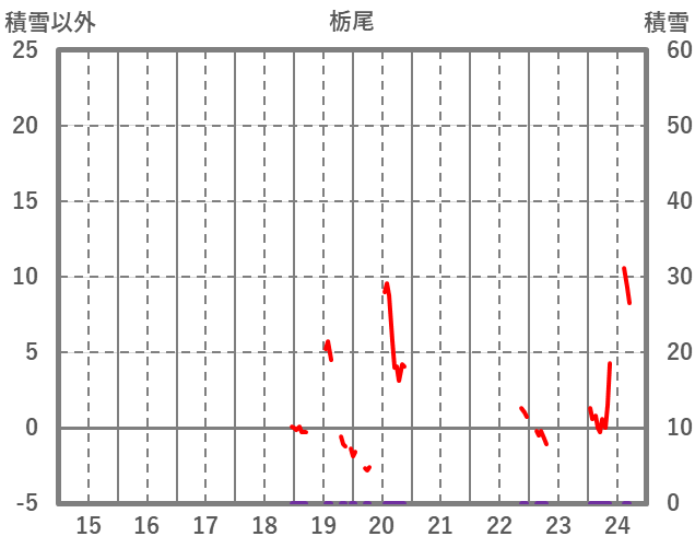 | 日 | 時 | 気温 | 降水 | 風向/風速 | 日照 | 積雪 | 降雪 |