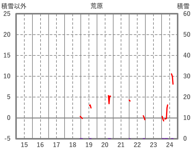 | 日 | 時 | 気温 | 降水 | 風向/風速 | 日照 | 積雪 | 降雪 |