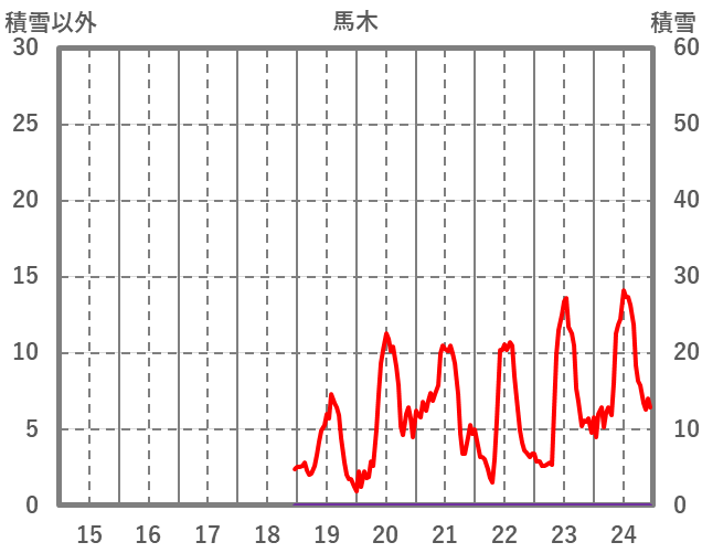 | 日 | 時 | 気温 | 降水 | 風向/風速 | 日照 | 積雪 | 降雪 |