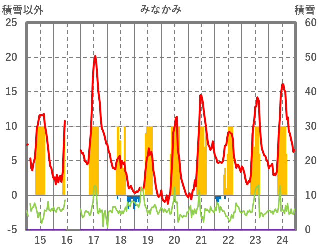 | 日 | 時 | 気温 | 降水 | 風向/風速 | 日照 | 積雪 | 降雪 |