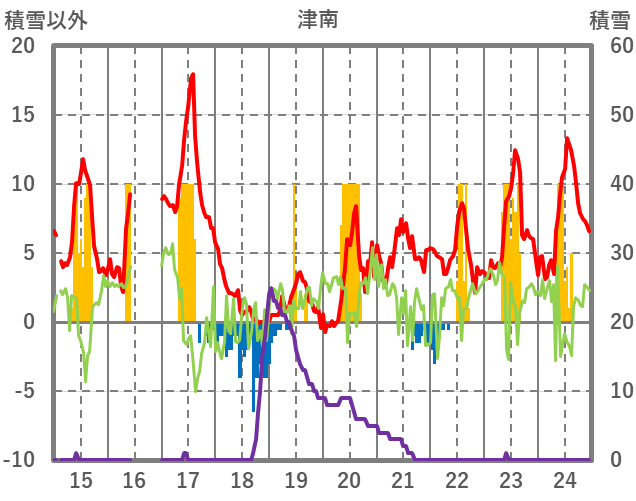 | 日 | 時 | 気温 | 降水 | 風向/風速 | 日照 | 積雪 | 降雪 |