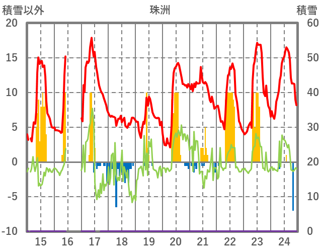 | 日 | 時 | 気温 | 降水 | 風向/風速 | 日照 | 積雪 | 降雪 |
