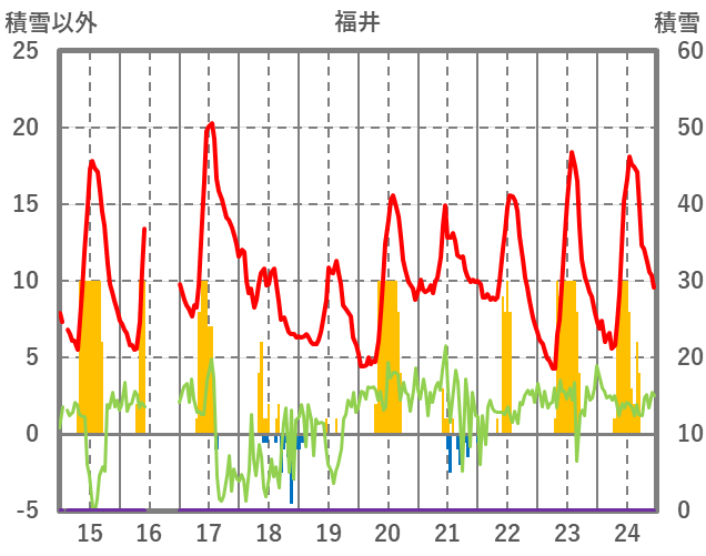 | 日 | 時 | 気温 | 降水 | 風向/風速 | 日照 | 積雪 | 降雪 |