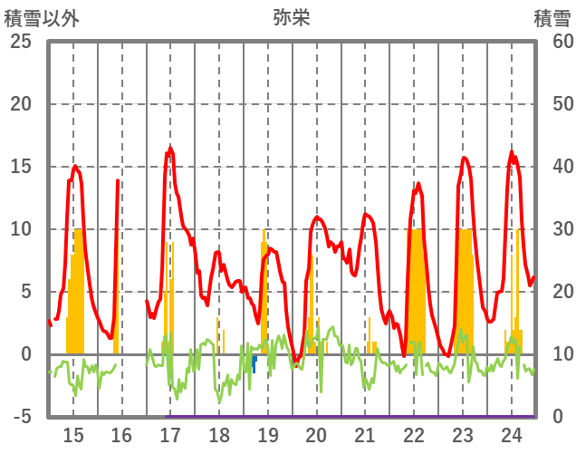 | 日 | 時 | 気温 | 降水 | 風向/風速 | 日照 | 積雪 | 降雪 |