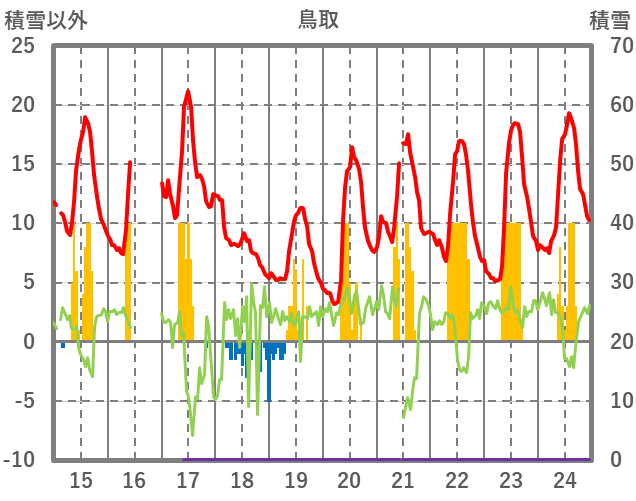 | 日 | 時 | 気温 | 降水 | 風向/風速 | 日照 | 積雪 | 降雪 |