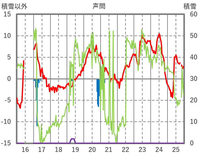 | 日 | 時 | 気温 | 降水 | 風向/風速 | 日照 | 積雪 | 降雪 |
