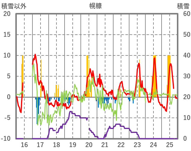 | 日 | 時 | 気温 | 降水 | 風向/風速 | 日照 | 積雪 | 降雪 |