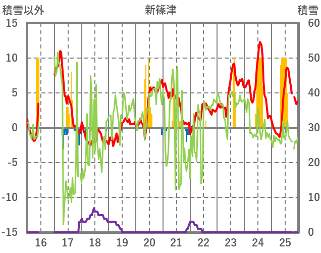 | 日 | 時 | 気温 | 降水 | 風向/風速 | 日照 | 積雪 | 降雪 |