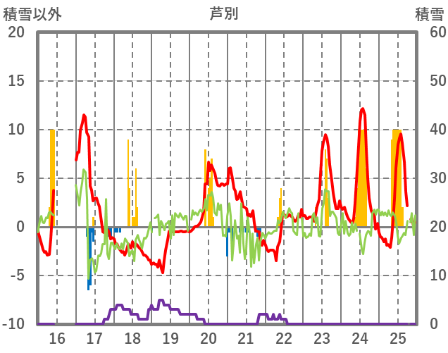 | 日 | 時 | 気温 | 降水 | 風向/風速 | 日照 | 積雪 | 降雪 |