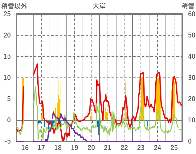 | 日 | 時 | 気温 | 降水 | 風向/風速 | 日照 | 積雪 | 降雪 |