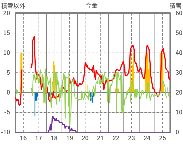 | 日 | 時 | 気温 | 降水 | 風向/風速 | 日照 | 積雪 | 降雪 |