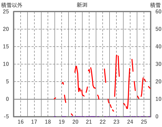 | 日 | 時 | 気温 | 降水 | 風向/風速 | 日照 | 積雪 | 降雪 |