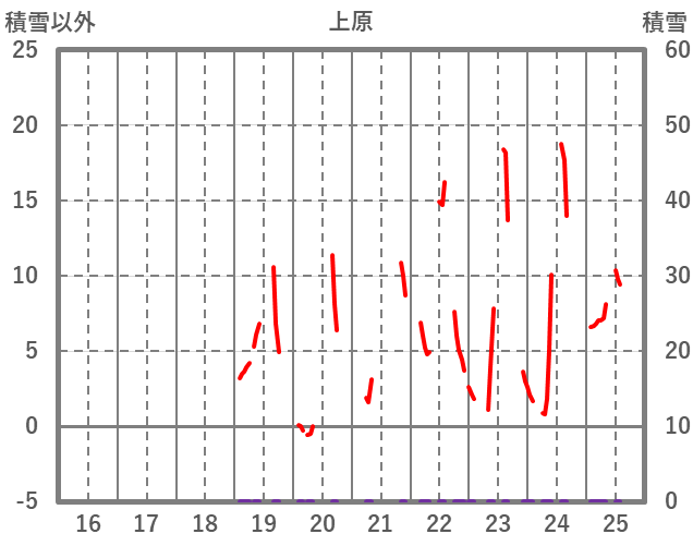 | 日 | 時 | 気温 | 降水 | 風向/風速 | 日照 | 積雪 | 降雪 |