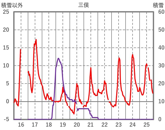 | 日 | 時 | 気温 | 降水 | 風向/風速 | 日照 | 積雪 | 降雪 |