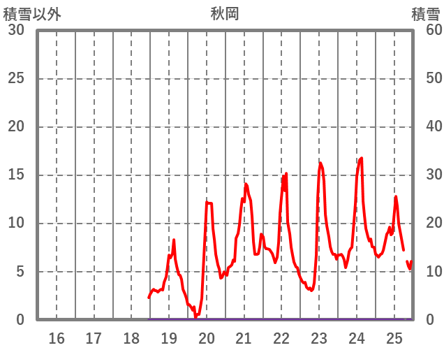 | 日 | 時 | 気温 | 降水 | 風向/風速 | 日照 | 積雪 | 降雪 |