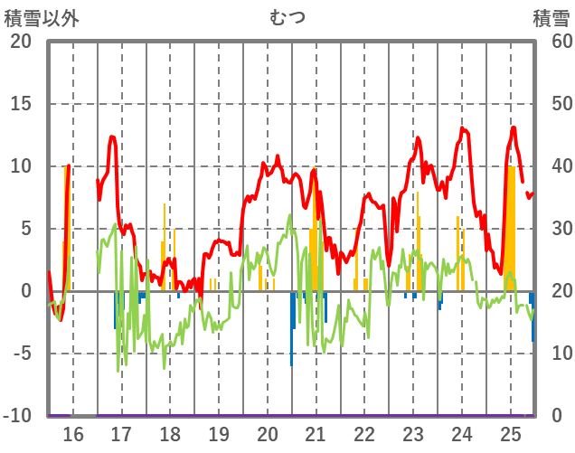| 日 | 時 | 気温 | 降水 | 風向/風速 | 日照 | 積雪 | 降雪 |