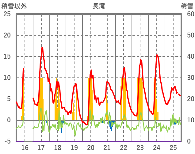 | 日 | 時 | 気温 | 降水 | 風向/風速 | 日照 | 積雪 | 降雪 |