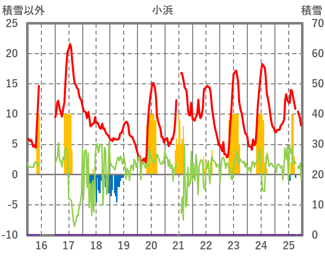 | 日 | 時 | 気温 | 降水 | 風向/風速 | 日照 | 積雪 | 降雪 |