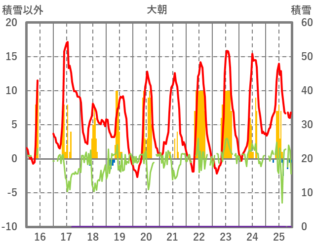 | 日 | 時 | 気温 | 降水 | 風向/風速 | 日照 | 積雪 | 降雪 |