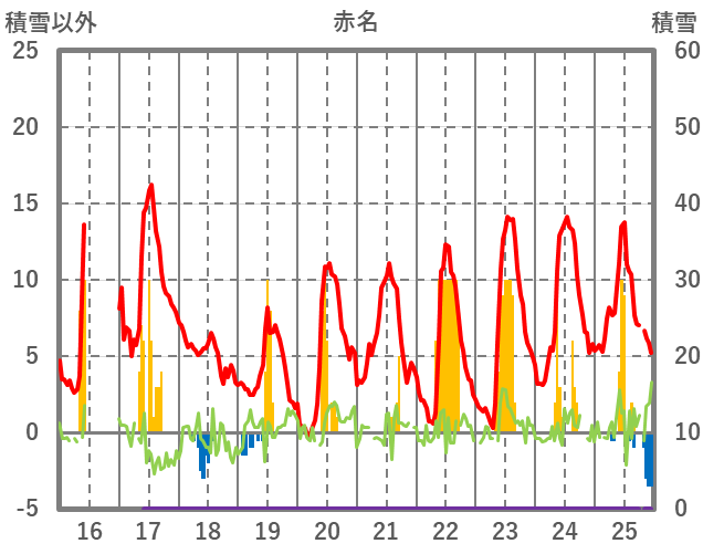 | 日 | 時 | 気温 | 降水 | 風向/風速 | 日照 | 積雪 | 降雪 |