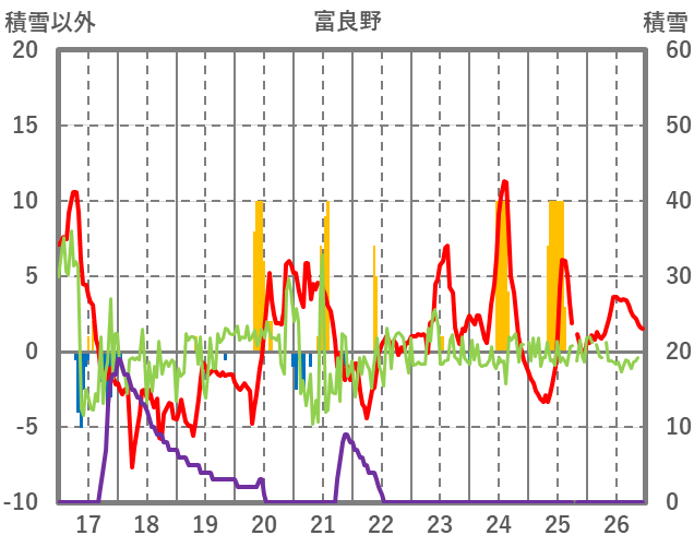 | 日 | 時 | 気温 | 降水 | 風向/風速 | 日照 | 積雪 | 降雪 |