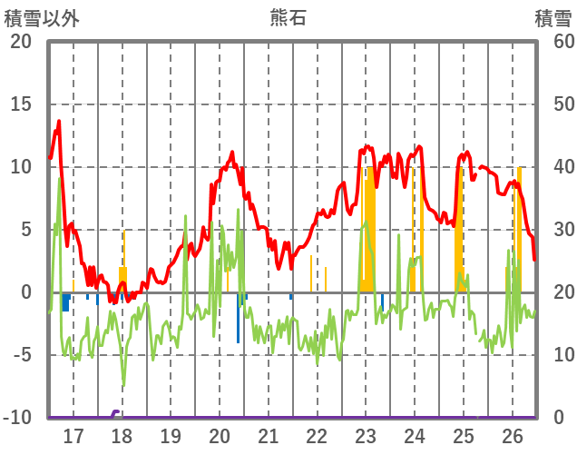| 日 | 時 | 気温 | 降水 | 風向/風速 | 日照 | 積雪 | 降雪 |