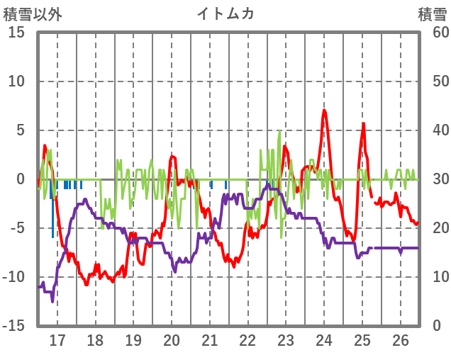 | 日 | 時 | 気温 | 降水 | 風向/風速 | 日照 | 積雪 | 降雪 |