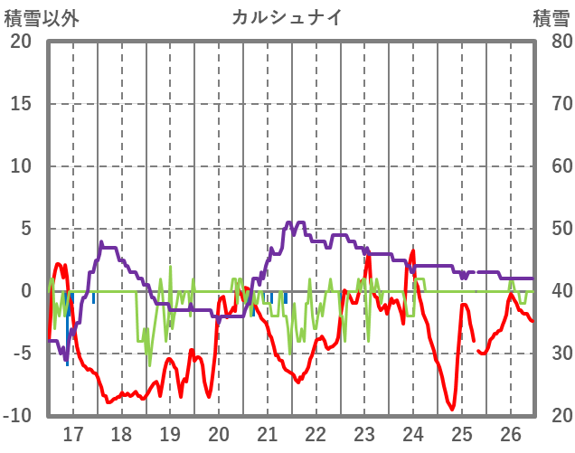 | 日 | 時 | 気温 | 降水 | 風向/風速 | 日照 | 積雪 | 降雪 |