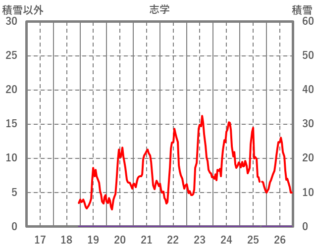 | 日 | 時 | 気温 | 降水 | 風向/風速 | 日照 | 積雪 | 降雪 |
