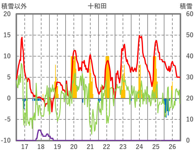 | 日 | 時 | 気温 | 降水 | 風向/風速 | 日照 | 積雪 | 降雪 |