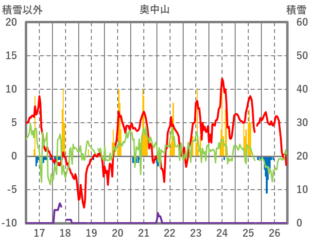 | 日 | 時 | 気温 | 降水 | 風向/風速 | 日照 | 積雪 | 降雪 |