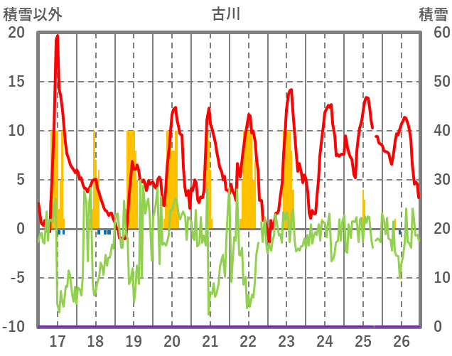 | 日 | 時 | 気温 | 降水 | 風向/風速 | 日照 | 積雪 | 降雪 |