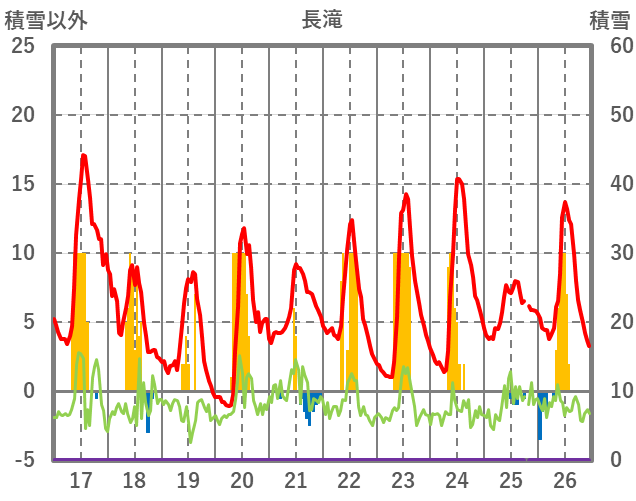 | 日 | 時 | 気温 | 降水 | 風向/風速 | 日照 | 積雪 | 降雪 |