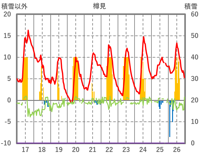 | 日 | 時 | 気温 | 降水 | 風向/風速 | 日照 | 積雪 | 降雪 |