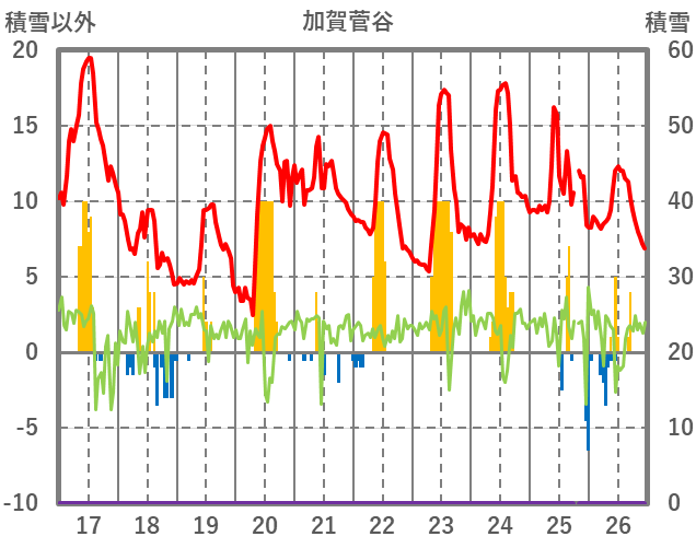| 日 | 時 | 気温 | 降水 | 風向/風速 | 日照 | 積雪 | 降雪 |