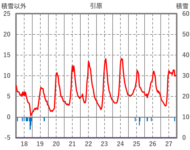 | 日 | 時 | 気温 | 降水 | 風向/風速 | 日照 | 積雪 | 降雪 |