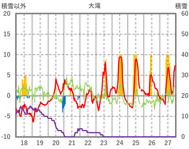 | 日 | 時 | 気温 | 降水 | 風向/風速 | 日照 | 積雪 | 降雪 |