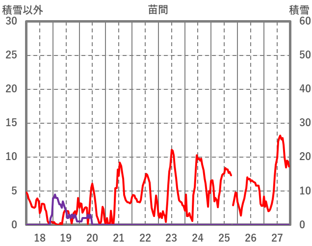 | 日 | 時 | 気温 | 降水 | 風向/風速 | 日照 | 積雪 | 降雪 |