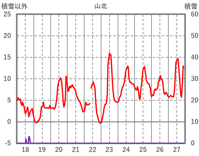 | 日 | 時 | 気温 | 降水 | 風向/風速 | 日照 | 積雪 | 降雪 |