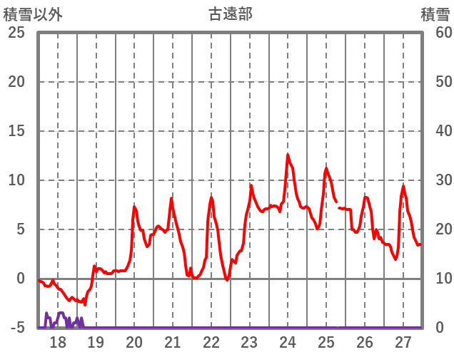 | 日 | 時 | 気温 | 降水 | 風向/風速 | 日照 | 積雪 | 降雪 |